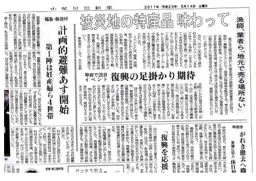 子供達とゴミ拾いしました。 また宮城県石巻市と福島県福島市の方々を招き開催した東日本大震災復興支援物産展も
