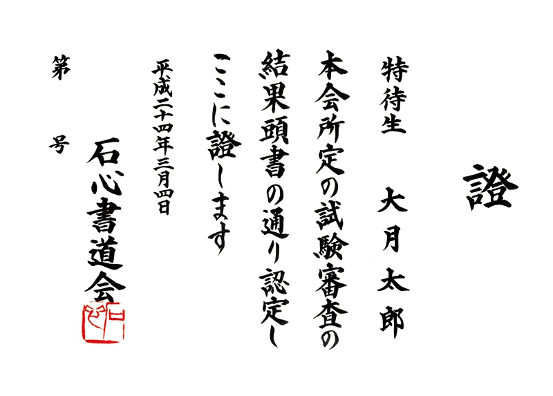 賞状全文 5,000円(掲載の認定書が基本となります)