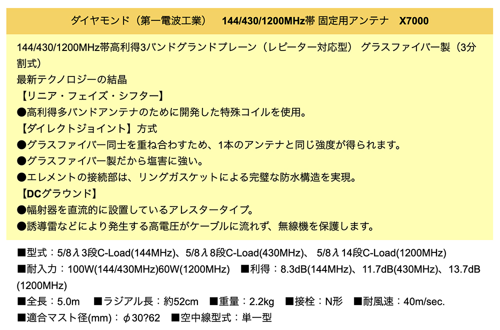 せっかくのIC9700は1200MHzにオンエア出来ますが、私の所にはアンテナが無いってこぼしたらX7000というアンテナを薦められました。