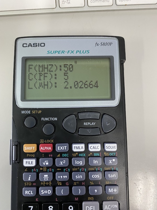 ↓は50MHz共振の時Cは5pFにしたときのLの値