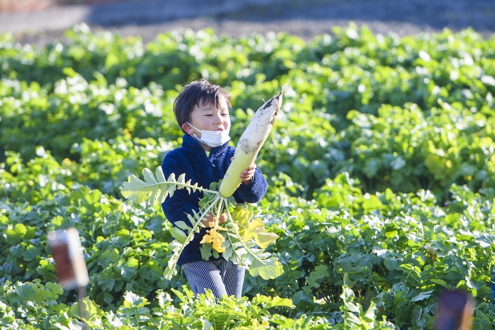 自治会の子供達が1000本の大根を力一杯抜き、各家庭に2本ずつ配りました