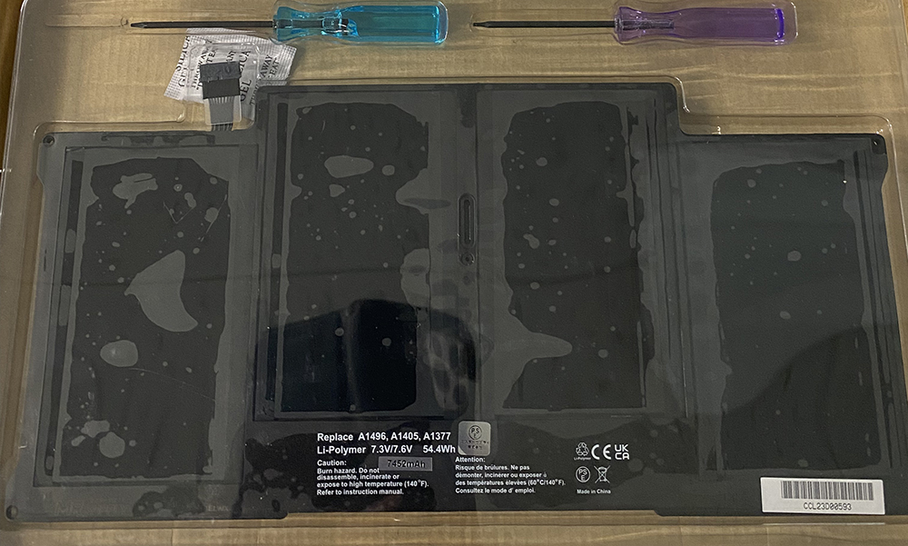 裏蓋を外しました。バッテリー4つのセルに分かれています。