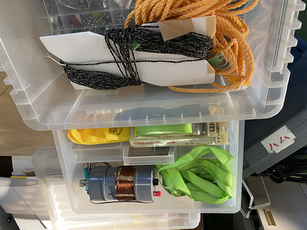 中継コネクター、工具、乾電池、ATU、ロープ、同軸などです。