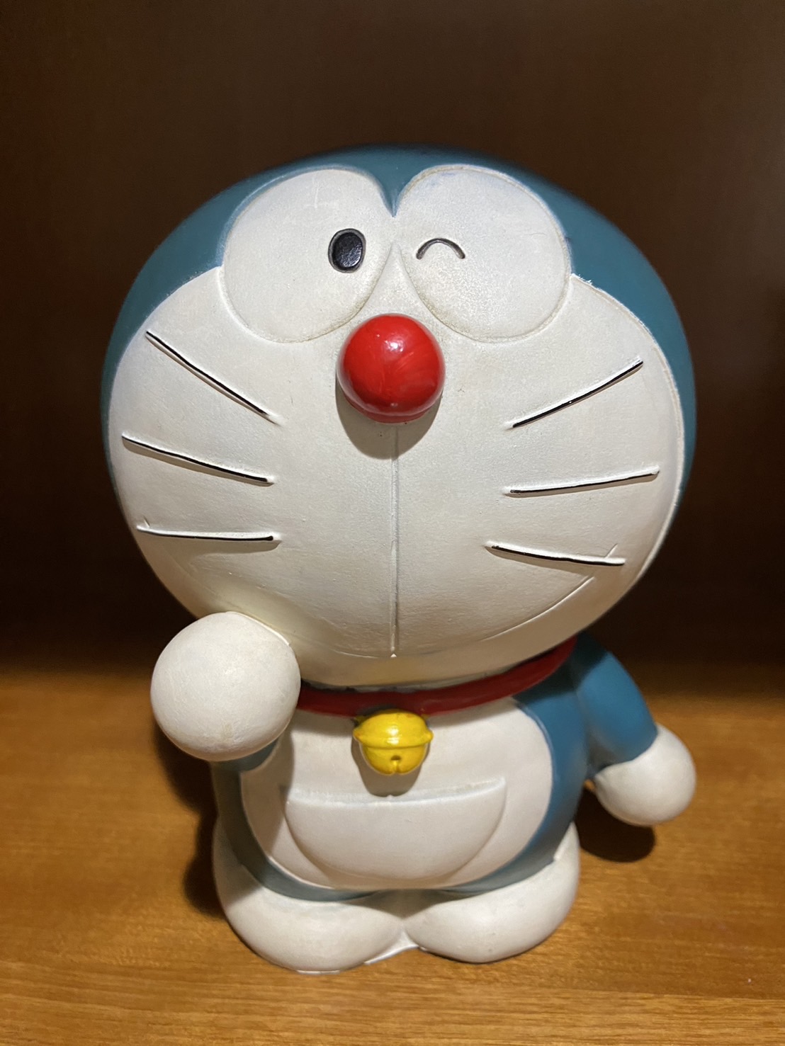 いつも廊下の片隅に置いてあるドラえもん貯金箱が気になる。
