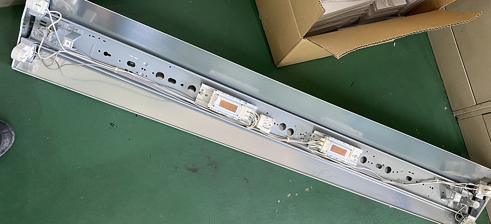 既存の蛍光灯は96wが5ヶ=480wの計算 LED灯は32wなので32x5≒160w 約三分の一に