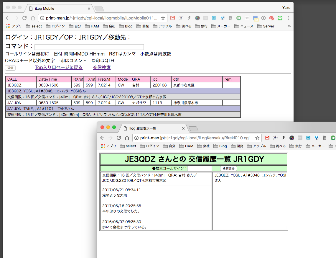 iLogユーザーのみ過去の交信履歴情報を確認出来る